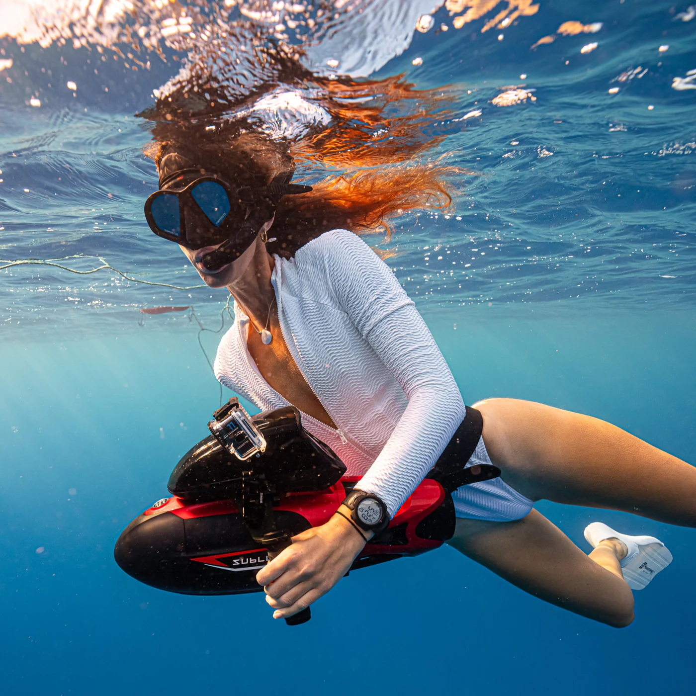 Zasnovan je za tiste, ki želijo raziskovati globlje in dlje. Z do 60 minutami avtonomije in možnostjo hitrega polnjenja v samo 90 minutah, je Vapor vedno pripravljen na novo pustolovščino. Pametni sistem varnostnih opozoril vas vibracijsko opozori na kritično globino ali hitro spreminjanje tlaka, kar zagotavlja brezskrbno potapljanje tako za profesionalce kot za rekreativne potapljače.